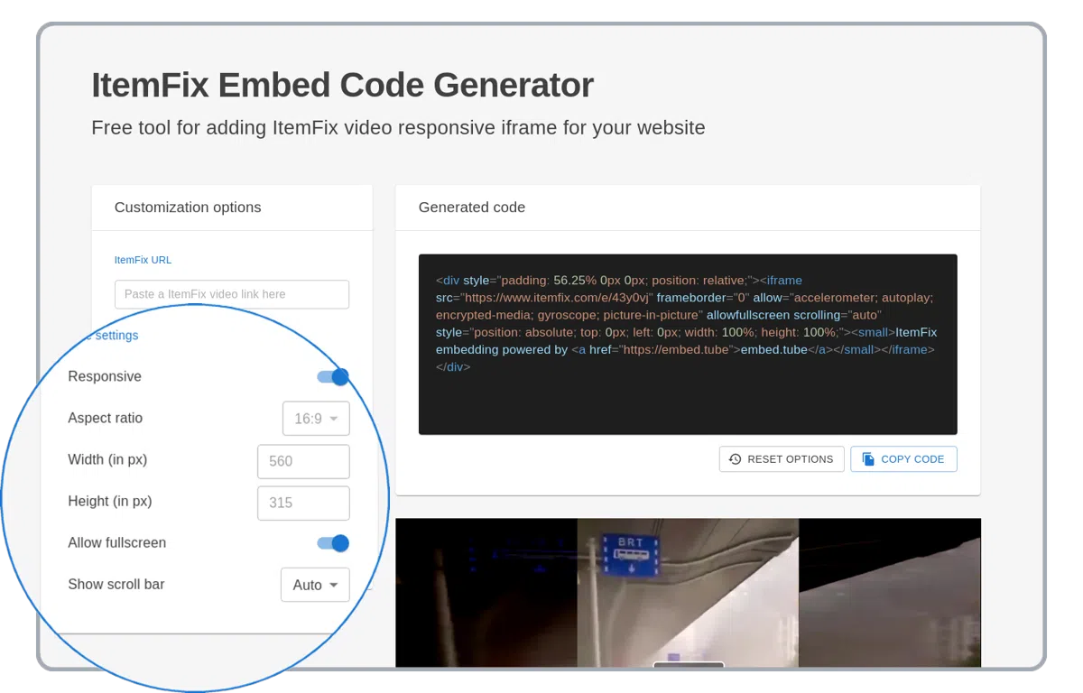 Бясплатны інструмент для дадання адаптыўнага iframe відэа ItemFix на ваш сайт.