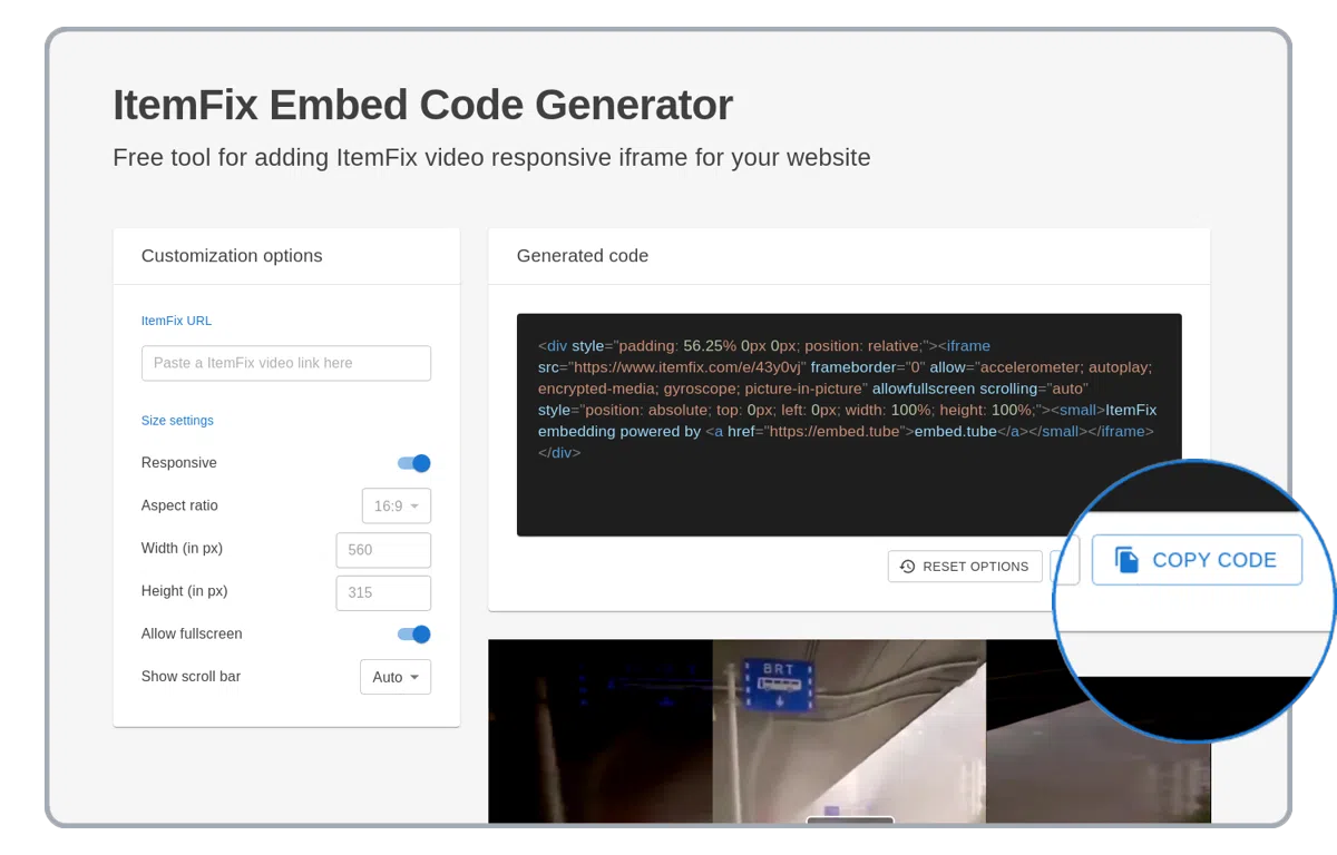 Як убудаваць відэа ItemFix з дапамогай гэтага інструмента?