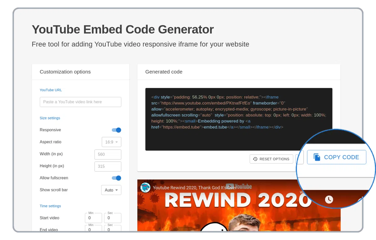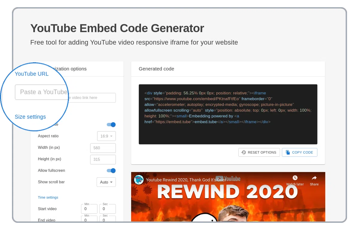 Alat gratis pikeun nambahkeun iframe responsif vidéo YouTube ka situs web anjeun.